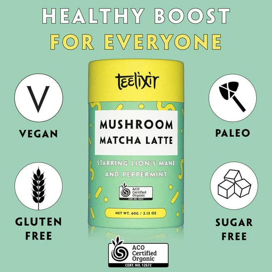 Teelixir Organic Mushroom Matcha Latte (Starring Lion's Mane and Peppermint) 100g