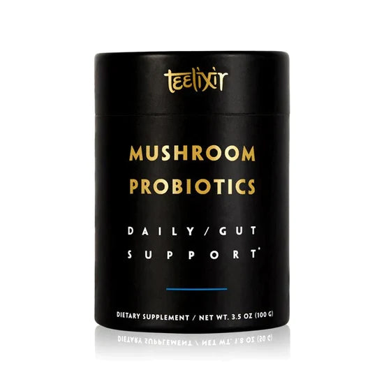 Teelixir Mushroom Probiotics is a carefully formulated blend of medicinal mushroom prebiotics and organic superfoods that nourish the gut and support healthy digestion.