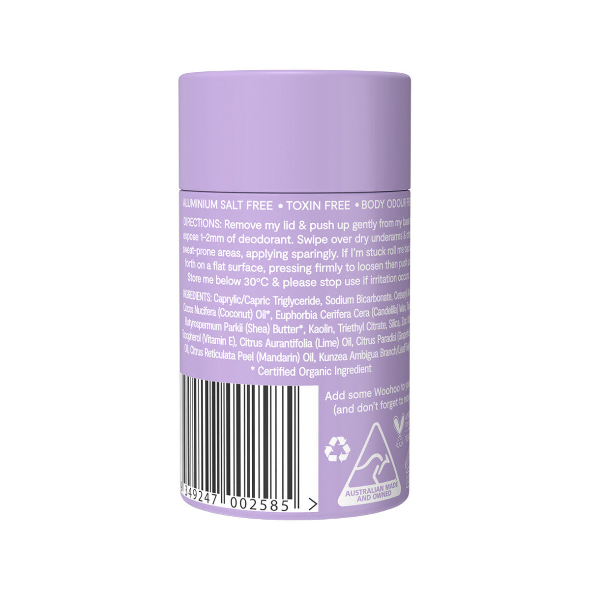 Woohoo Deodorant & Anti-Chafe Stick Pop (Extra Strength) 60g | made in Australia